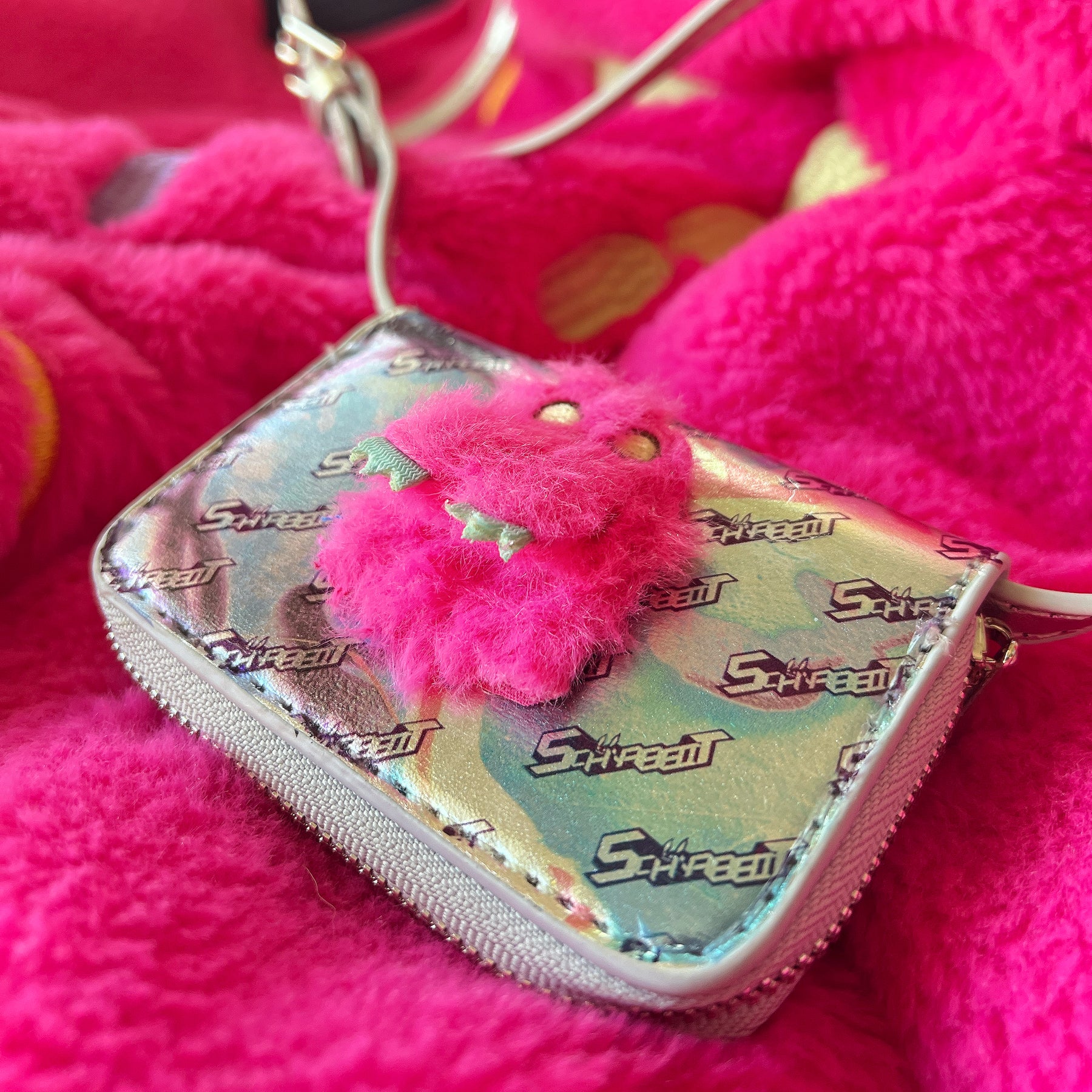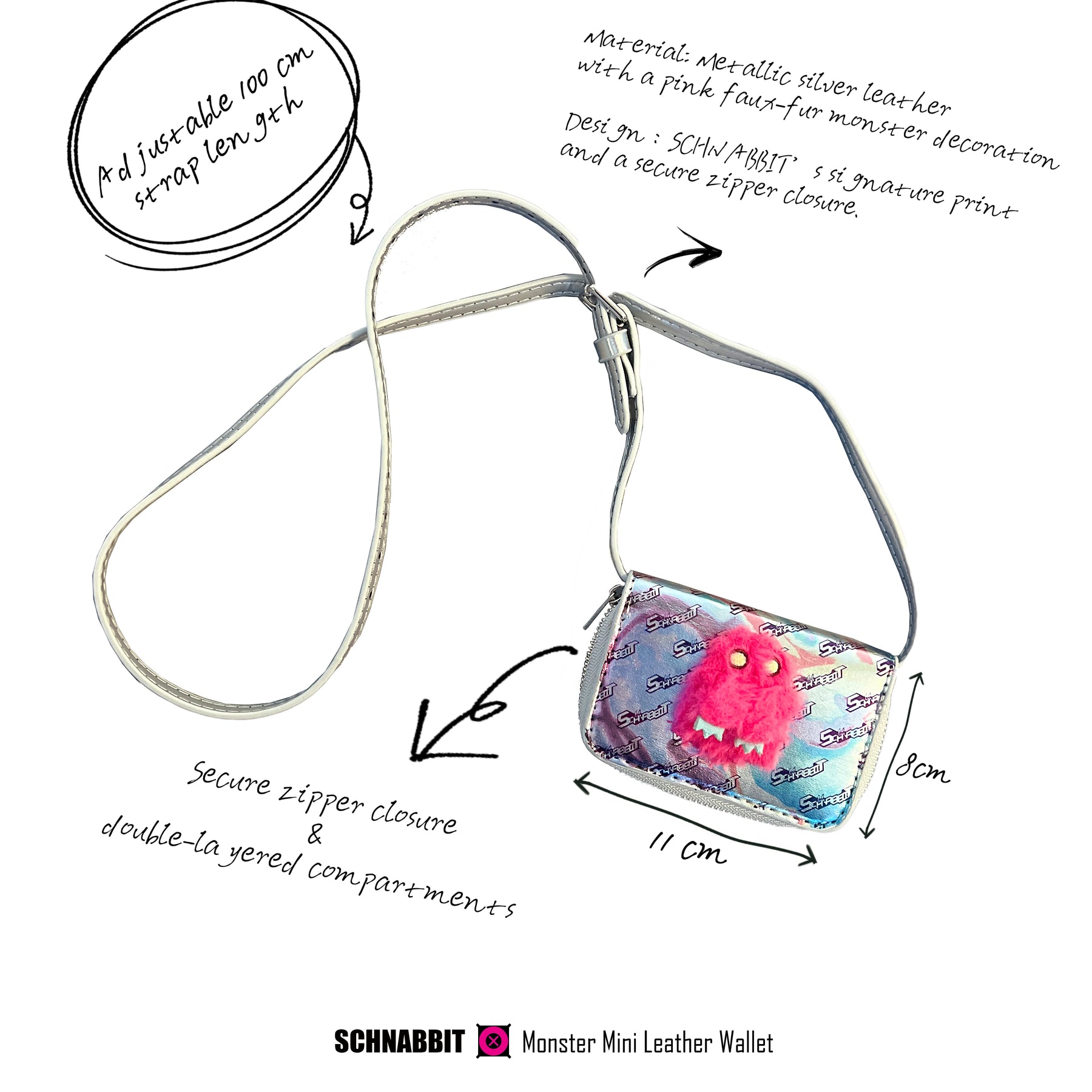 • Details: Decorated with SCHNABBIT’s iconic pink monster patch made of faux fur, and branded print across the metallic leather.
