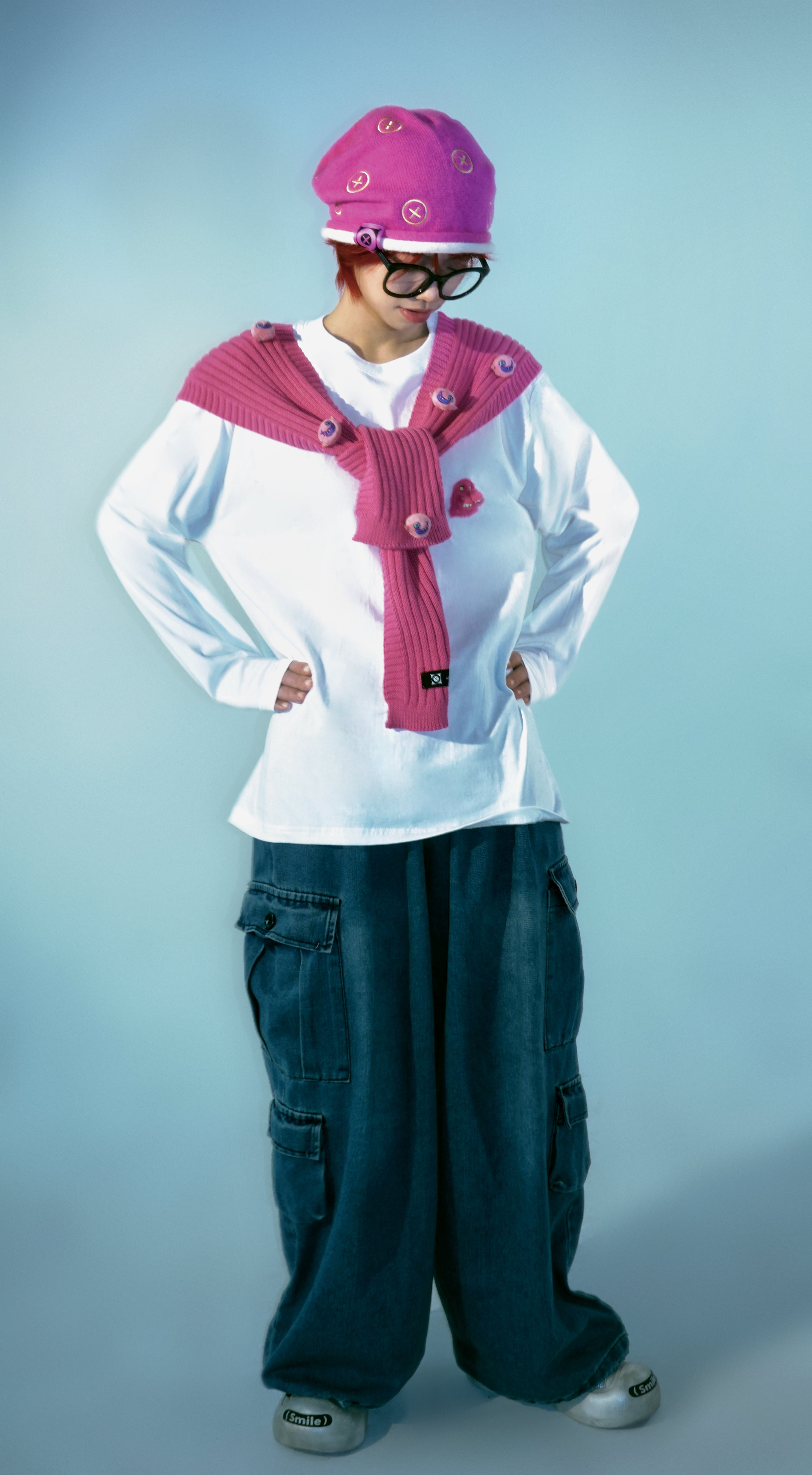 Material: Soft ribbed knit, padded cotton-filled embroidery buttons
